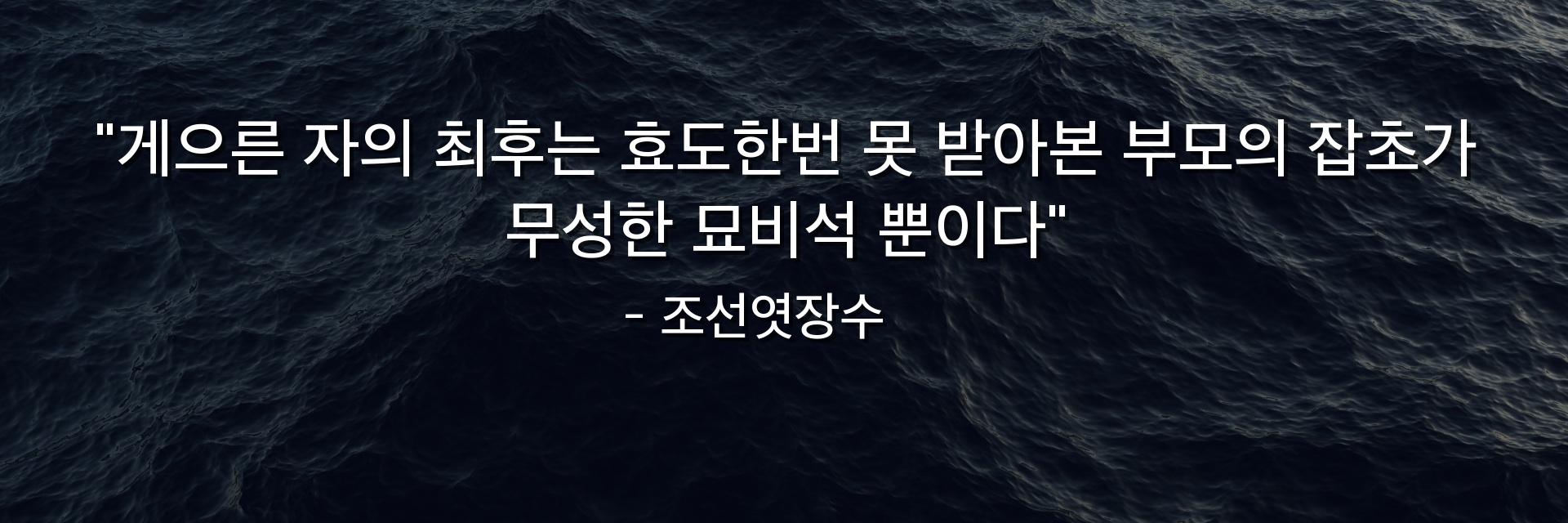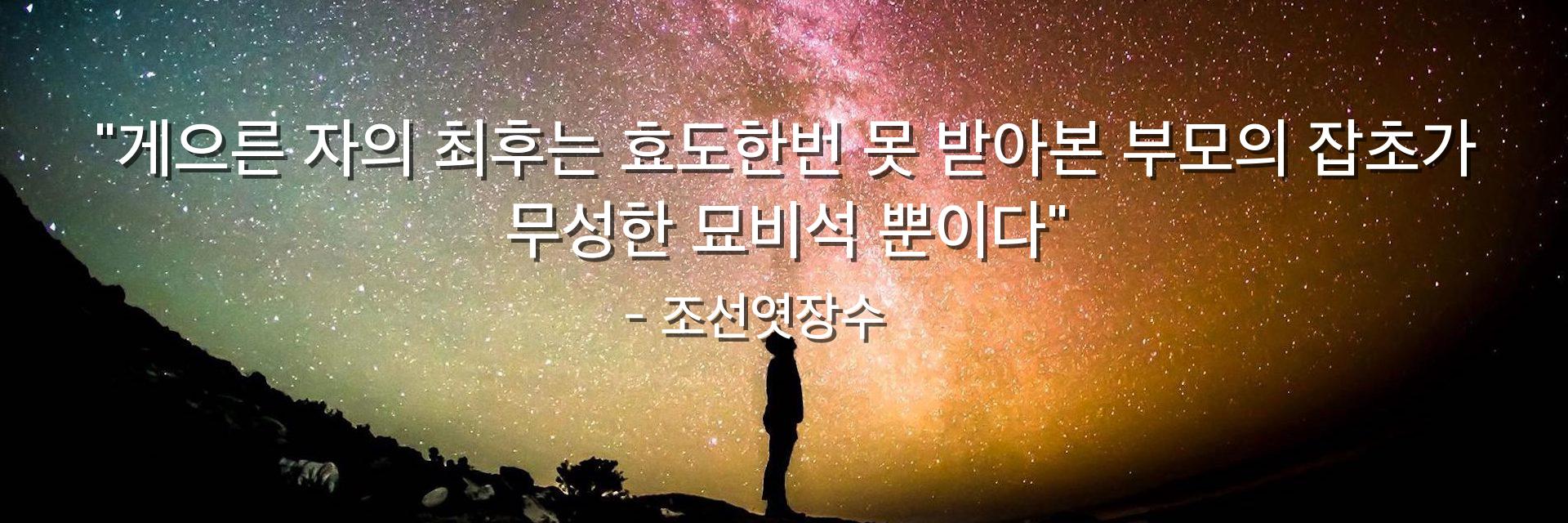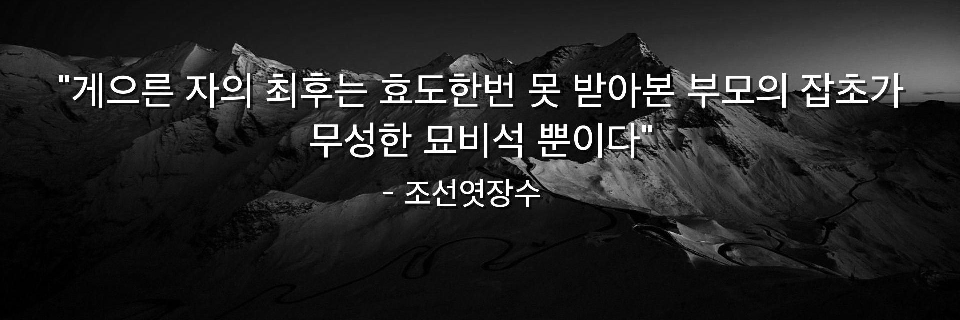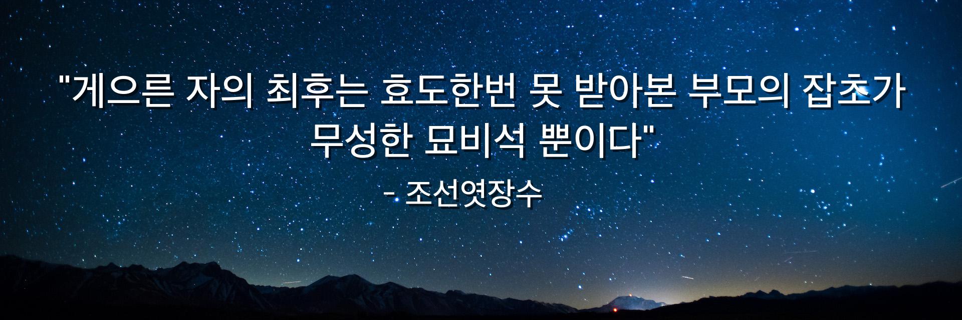 "게으른 자의 최후는 효도한번 못 받아본 부모의 잡초가 무성한 묘비석 뿐이다"