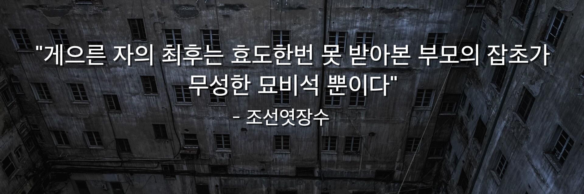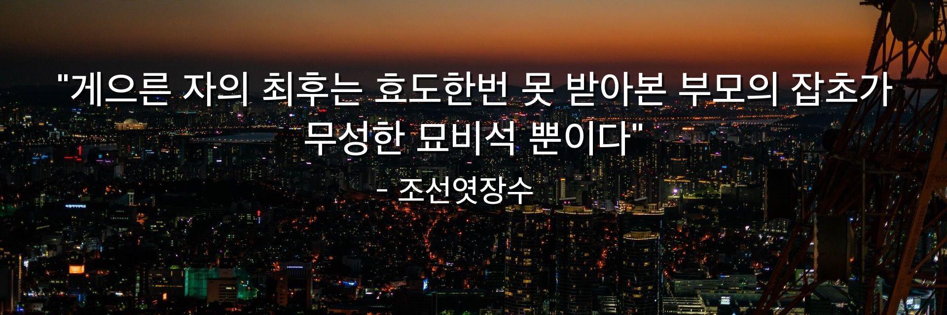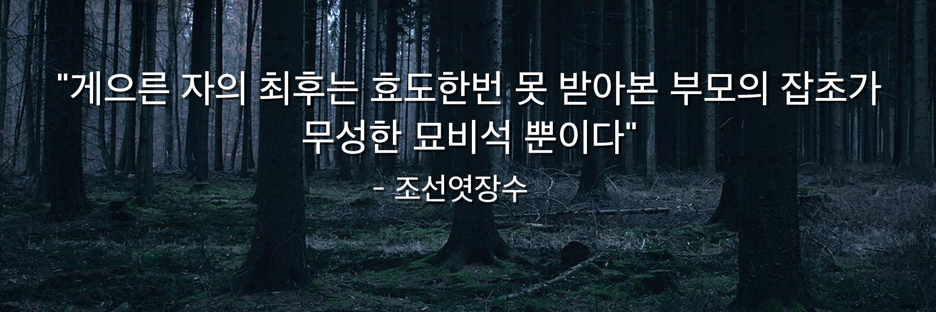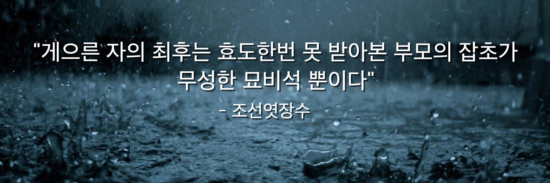 "게으른 자의 최후는 효도한번 못 받아본 부모의 잡초가 무성한 묘비석 뿐이다"