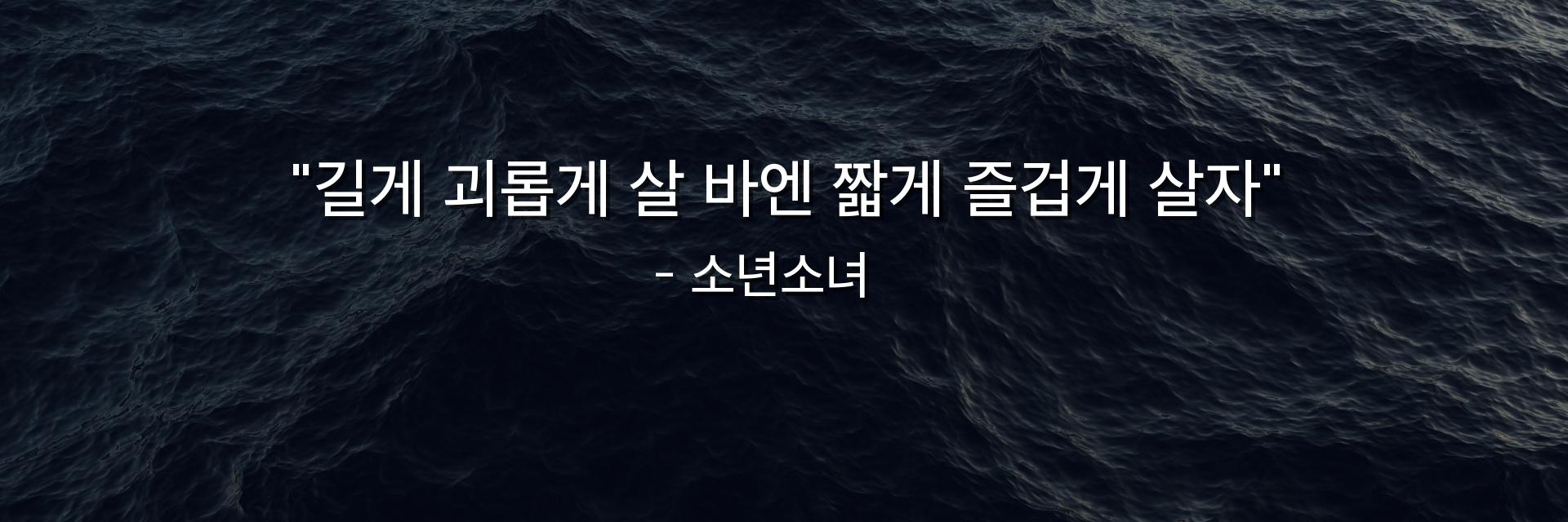 "길게 괴롭게 살 바엔 짧게 즐겁게 살자"