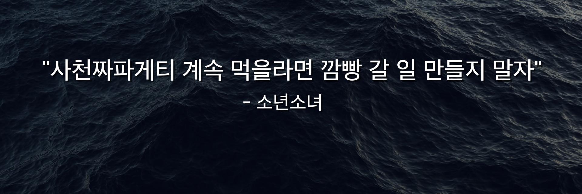 "사천짜파게티 계속 먹을라면 깜빵 갈 일 만들지 말자"
