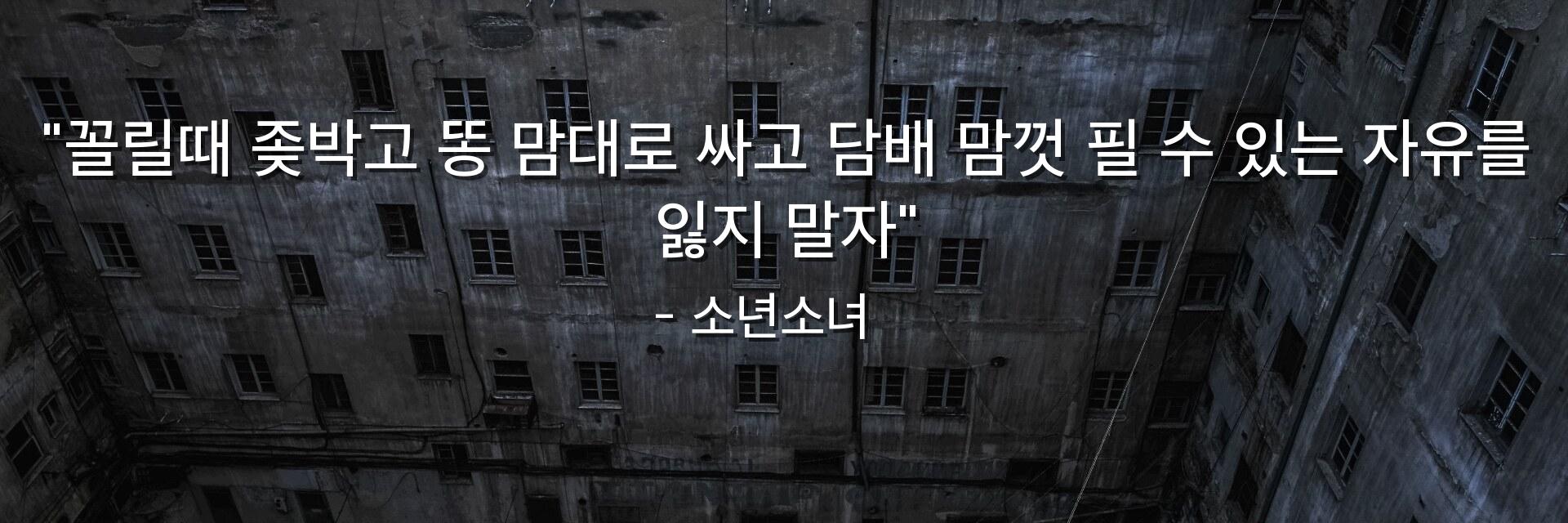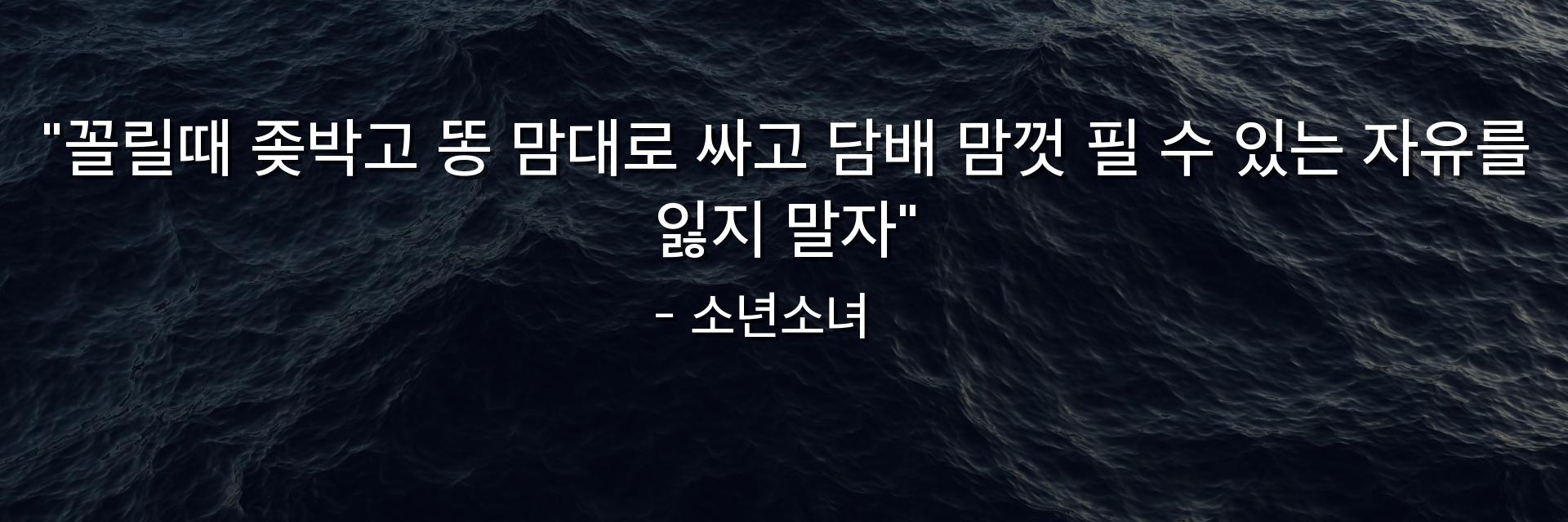 "꼴릴때 좆박고 똥 맘대로 싸고 담배 맘껏 필 수 있는 자유를 잃지 말자"