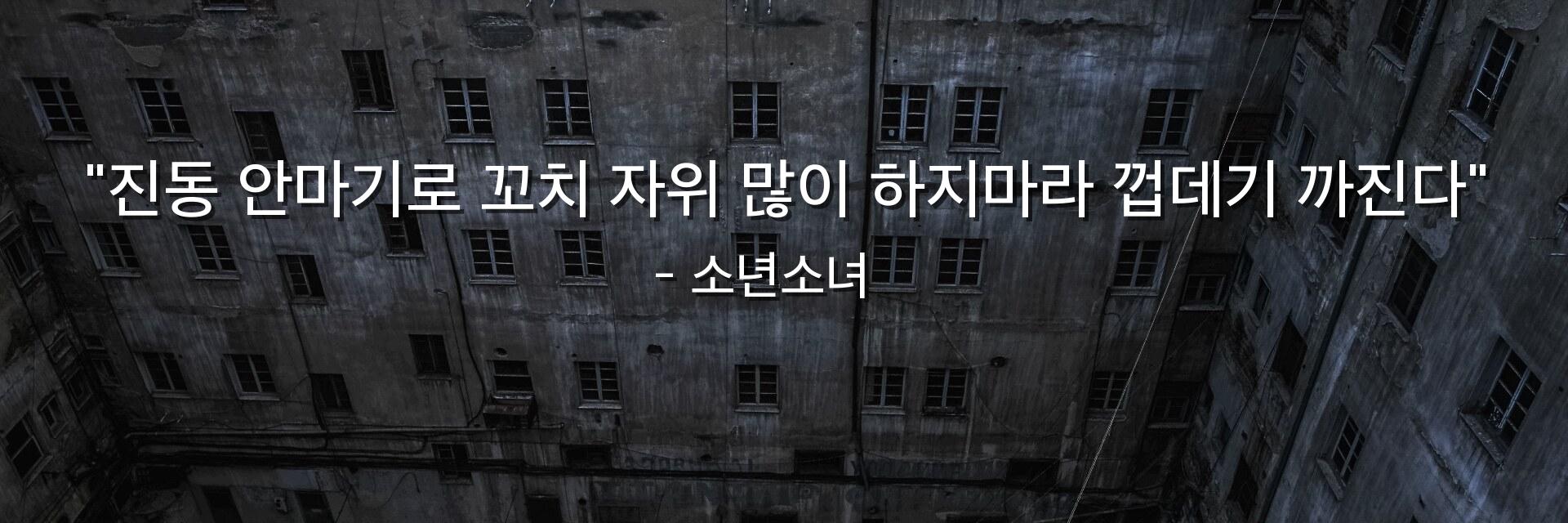 "진동 안마기로 꼬치 자위 많이 하지마라 껍데기 까진다"
