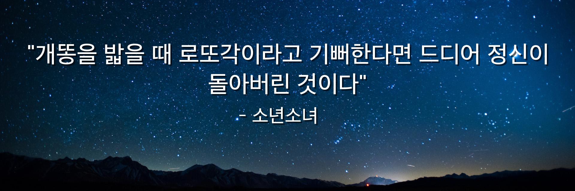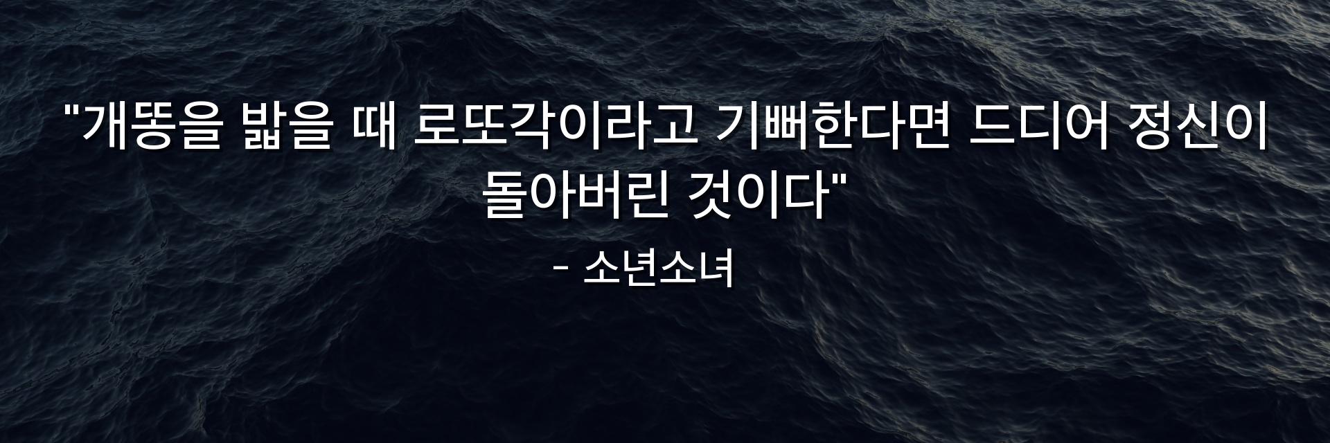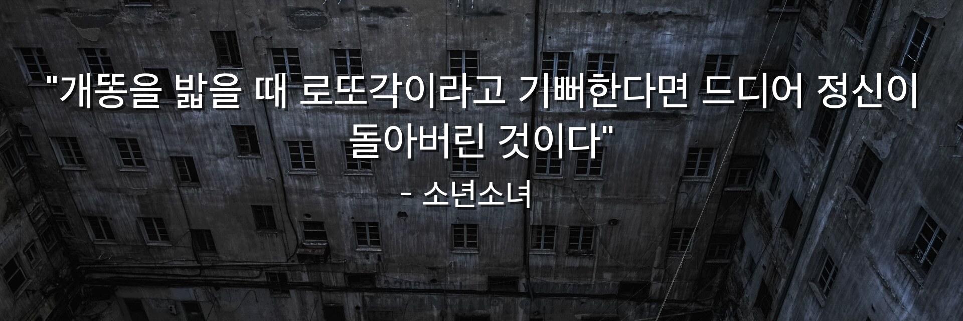 "개똥을 밟을 때 로또각이라고 기뻐한다면 드디어 정신이 돌아버린 것이다"