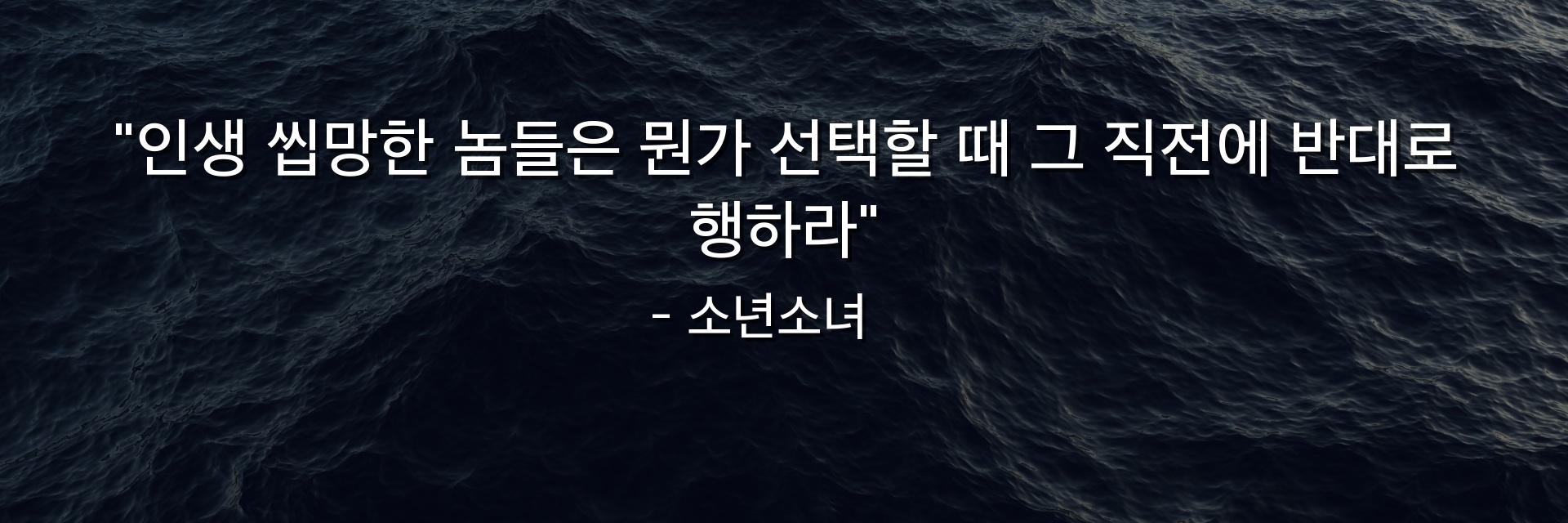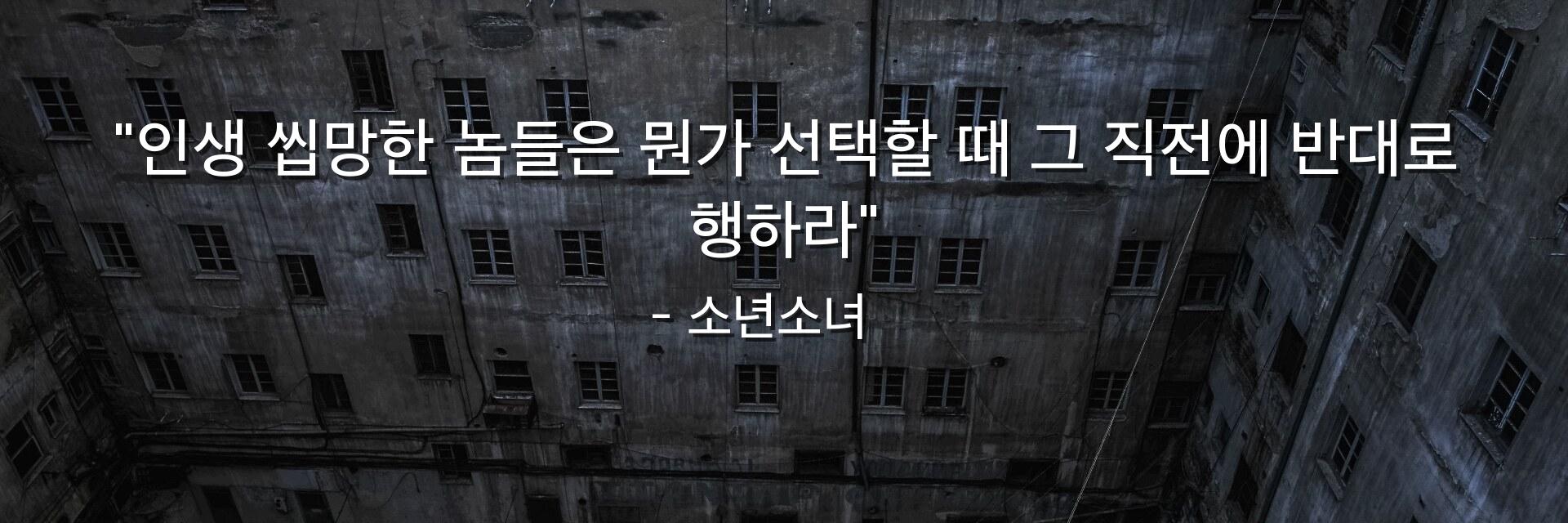 "인생 씹망한 놈들은 뭔가 선택할 때 그 직전에 반대로 행하라"