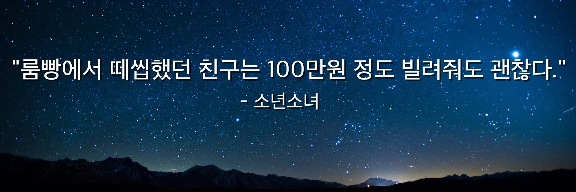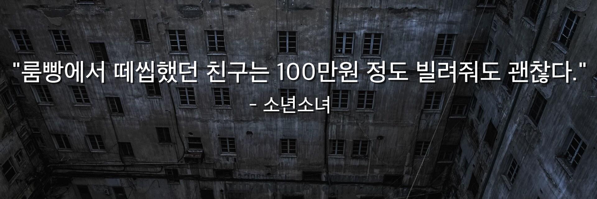 "룸빵에서 떼씹했던 친구는 100만원 정도 빌려줘도 괜찮다."