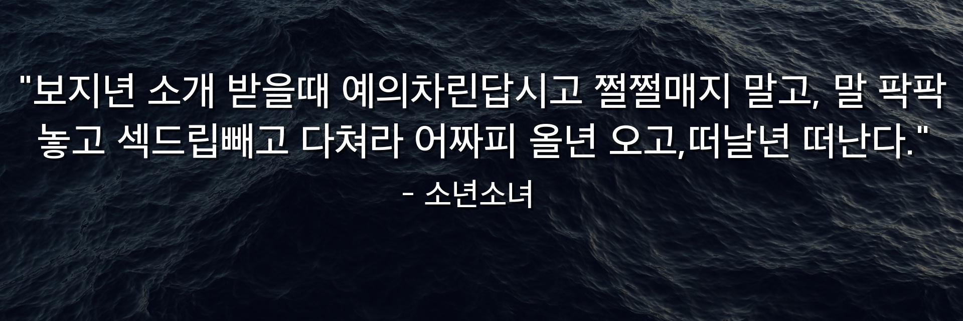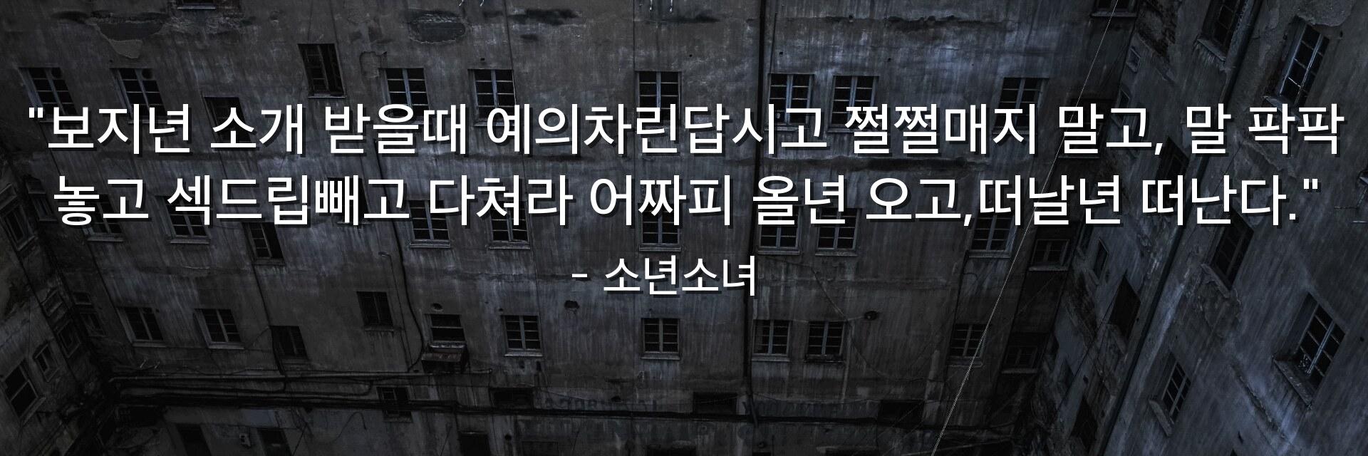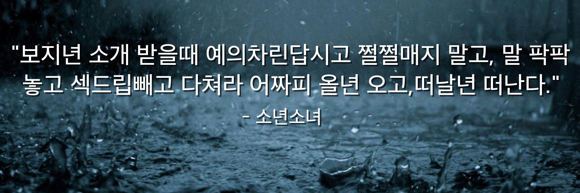 "보지년 소개 받을때 예의차린답시고 쩔쩔매지 말고, 말 팍팍 놓고 섹드립빼고 다쳐라 어짜피 올년 오고,떠날년 떠난다."